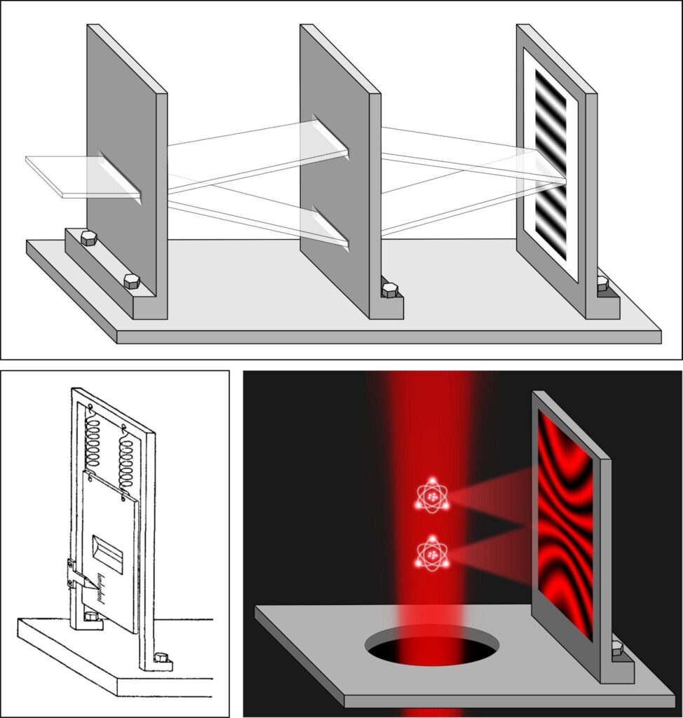 One critical finding of the MIT experiment was that atoms held in place with laser beams (analogous to a screen with a slit held by springs, see figure) behaved the same way as atoms floating freely in space. This addressed a widespread misconception in the field about the roles of the “springs” which hold the slits in space.